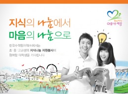 한국수력원자력(주)에서 실시하는 아이슈타인 프로젝트는 교육환경이 열약한 원자력발전소 주변지역에 소외된 학생에게 학습지원을 통해 지역 우수 인재 양성을 목적으로 하고 있다. “지식의 나눔에서 마음의 나눔으로”라는 슬로건으로 아인슈타인 프로젝트에 동참할 자원봉사자를 모집하기 위해 포스터를 제작하였다.